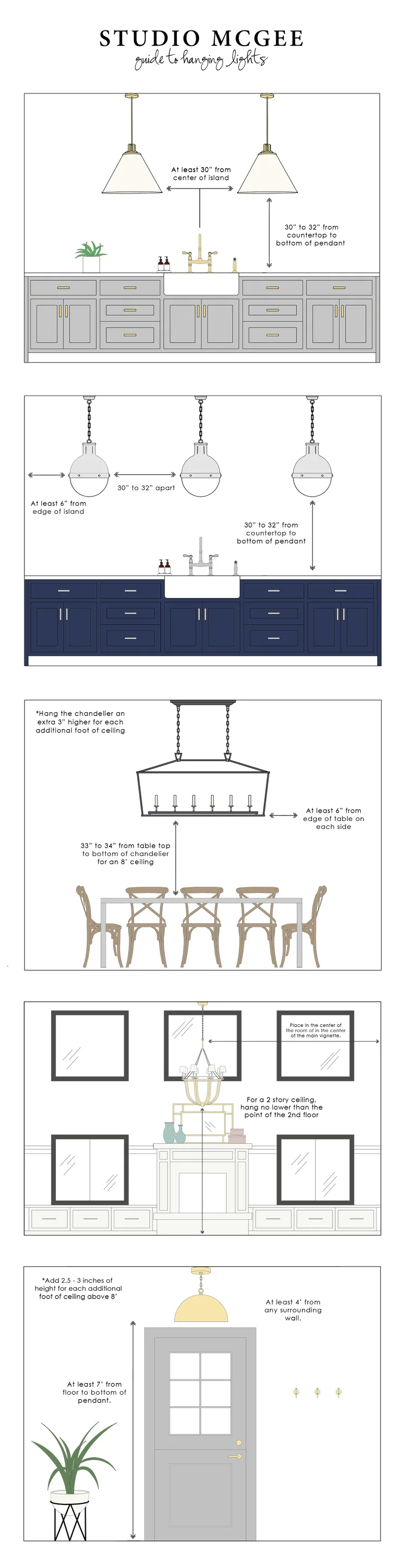 However, over time, I've learned and found some great resources to answer the questions of is this chandelier too big, how many pendant lights should I have, how high should I hang this light? Here are my favorite resources. Use them, so you don't have to call your paint/ sheet rock guy next time!
